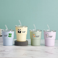 Creative Children's Cartoon Suction Cup Anti-scald Glass Coffee Mug Large Capacity Straw Cap